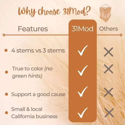 31Mod Faux Pampas Grass With 4 Large Artificial Pampas Grass Stems — 43″ (Set Of 4), No-Shedding And Low Maintenance Pampas Grass Decor, Fake Pampas Grass, Pampas Grass Large, Boho Decor (43″)