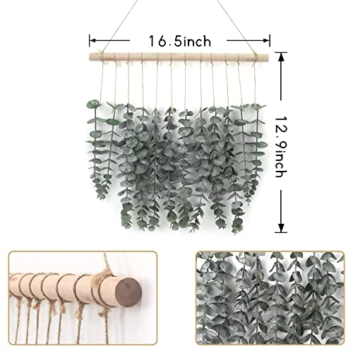 - 【The Size】 The width of the hardwood rod is 16 inches and the length of the faux eucalyptus leaves vary from 8-12 inches. Our eucalyptus wall hanging is perfect for boho and farmhouse style decor, Perfect for use anywhere in the home