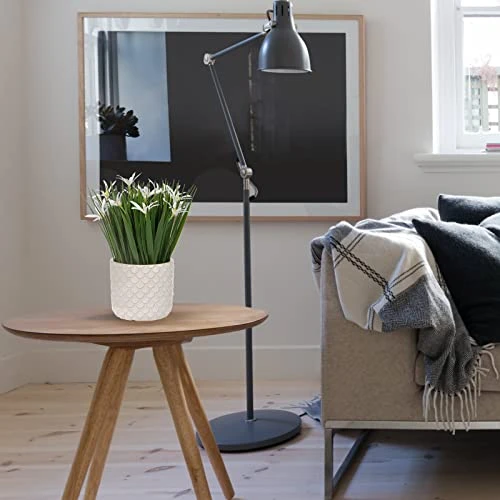 - DELICATE DESIGN: Small fake plant would be a great decoration to any small space,nice simple clean design to go with any decor style, you will get lots of compliments for these small plants decor. Vibrant fake plants are paired with ceramic pots, which are simple yet elegant. It can be a good choice when you don’t know whether the product you choose will match the environment in your home.
