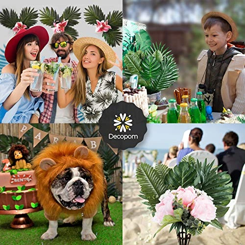 - ???? PARTY DECORATIONS SUPPLIES – The tropical leaves are suitable as table confetti or event venue for luau party, tropical party, wedding ceremony, beach party, pool party, stand juice bars, food bar and baby shower decorations; If you are thinking at special theme parties such as safari or jungle style, our palm leaves would be a good choice; Use them as table decorations, wall decorations, backdrop decors, or even sew it on your clothes.