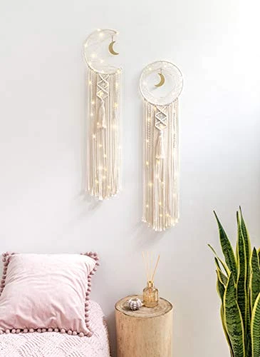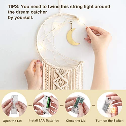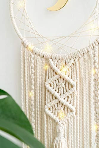 - Cute Moon Net Design: The dream catcher will filter out all of the nightmares. Hanging it near the window makes a good dream at night. With metal Half and full moon shape design, not easy to be out of shape, with woven macrame decor, let the dream catcher looks beautiful and cute. Perfect decorative your home, office, bedroom, living room, even use it as a wedding and party decoration.