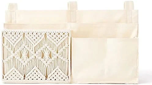 - High Quality: Made of strong cotton canvas, the bedside organizer is durable for use. With 7 pockets so that you can organize things separated and easily take them out. The outer pocket with a macrame woven pattern to make the bed hanger look more chic and attractive. –( It is protected by intellectual property right.)