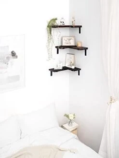 Mkono Corner Floating Shelves Wall Shelf Set Of 3, Shelves For Wall Storage, Rustic Wood Wall Mounted Display Shelves For Bathroom Bedroom Kitchen Garage, Brown