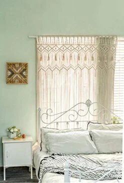 Mkono Macrame Curtain Large Boho Woven Wall Hanging Window Curtains Handmade Bohemian Decor For Window Doorway Closet Wedding Backdrop Arch Bedroom Living Room Apartment, 51”W X 70”L