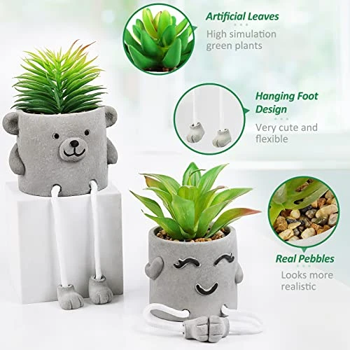 - [Unique Shape] Our mini plants has a realistic appearance. Each style is different. The unique hanging foot design makes the lifelike artificial plants more visual impact. Add fashion and cuteness to your home decoration.