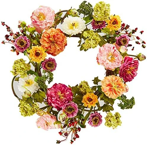 - Measurements are from the bottom of the wreath to the furthest outstretched dimenision. This item will need to be re-shaped and can easily bend for reshaping purposes – please separate and fluff the flowers stems to achieve desired fullness