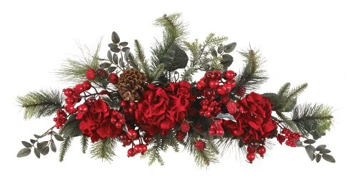 Nearly Natural 4914 Mini Poinsettia & Berry Triple Candelabrum, Red