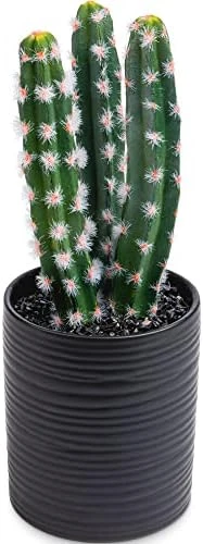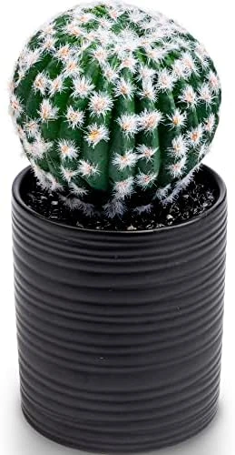 - THE PERFECT SIZE – This artificial cactus is potted in a white ribbed ceramic pot with black rocks. Its realistic size of 10.5 x 4.5 inches makes it great for centerpieces, office decor, living room decor, and more!