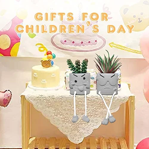 - ⭐⭐【UNIQUE DESIGN】: Artificial Faux Succulents unique hanging leg design and gray pots, stylish and lovely appearance.The succulent desk decor adopts expression styles of smile can keep you in a good mood and make you full of energy at work or in life.