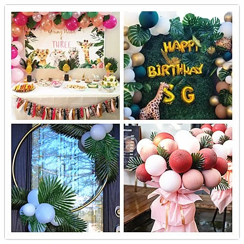 - WIDELY DIY USED:The tropical leaves are suitable for birthdays, weddings, Hawaii, jungles, tropical rain forests, baby parties, luau party, tropical party, Safari Party, Beach Theme,TIKI Parties. Also can put on the vases, dining tables, dining chairs, table runners for decoration. They will show you how creative and refreshing they can be, beautiful and elegant, create an authentic tropical island atmosphere.
